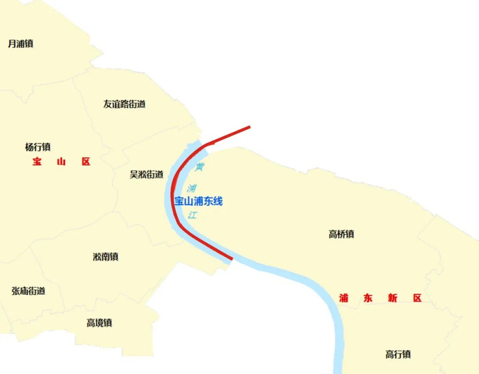 沿线涉及宝山区的淞南镇、吴淞街道和浦东新区的高桥镇。