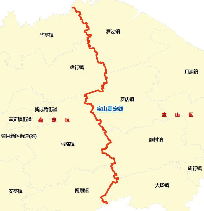 沿线涉及宝山区的罗泾镇、罗店镇、顾村镇、大场镇和嘉定区的华亭镇、徐行镇、马陆镇、南翔镇。