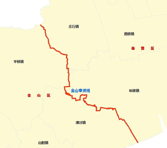 沿线涉及金山区的亭林镇、漕泾镇和奉贤区的庄行镇、柘林镇。