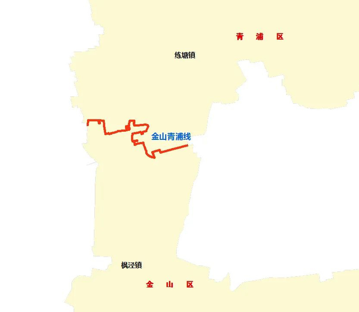 沿线涉及金山区的枫泾镇和青浦区的练塘镇。