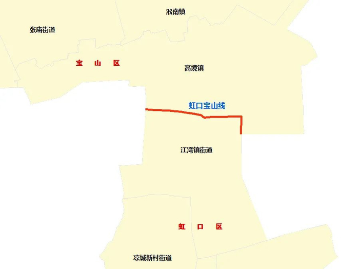 沿线涉及虹口区的江湾镇街道和宝山区的高境镇。