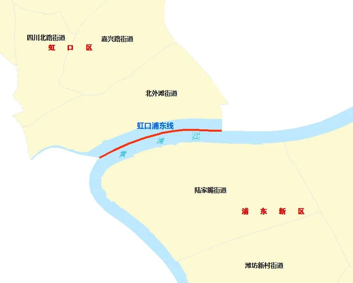 沿线涉及虹口区的北外滩街道和浦东新区的陆家嘴街道。