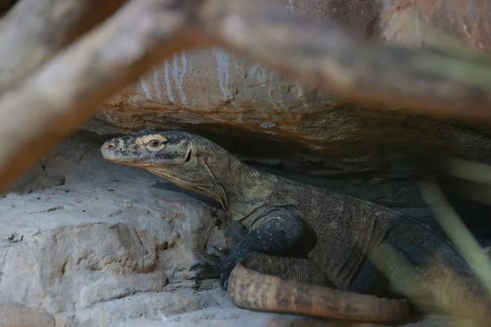 科摩多巨蜥,又名科摩多龙,是现存陆地上体型最大的蜥蜴,也是自然界顶尖的捕食者之一。目前,科摩多巨蜥已濒临灭绝,野外仅存3000只左右,是世界上较为珍贵的动物之一。上海动物园引进的这两只科摩多巨蜥年龄在3岁左右,还处在亚成体阶段,体长在1.5米左右。