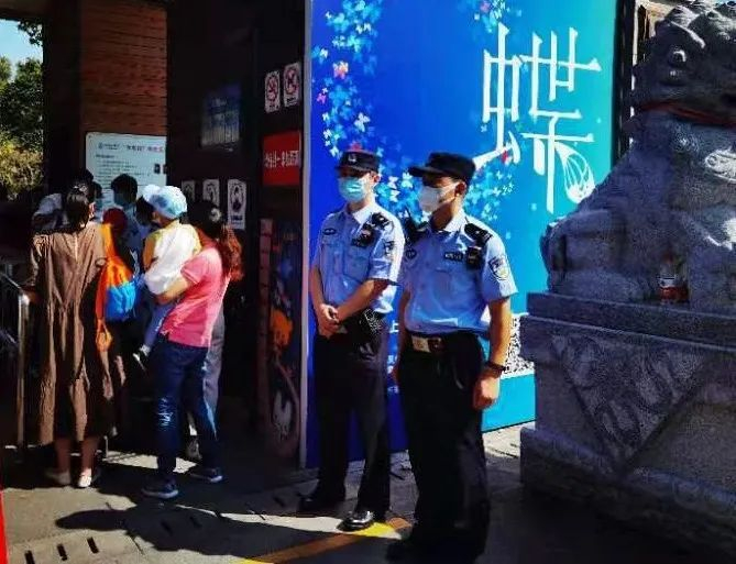 面对国庆游园高峰,上海动物园人工售票处和自助售票机窗口已开足,并有工作人员在旁做好分流工作,游客在专人的引导下安全有序地在蛇形通道区排好队伍进行入园。为配合做好防疫工作,在动物园正门口,民警协助园方完成游客的身份核实、健康码审核工作,并提醒大家做好个人防护措施,保证防疫不松懈。