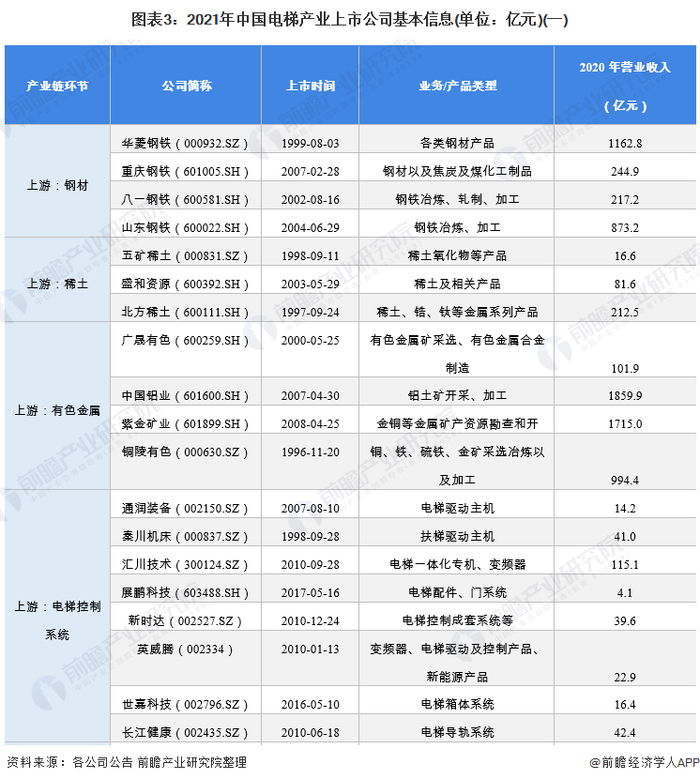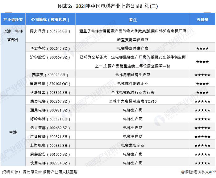原标题:【最全】2021年电梯产业上市公司全方位对比(附业务布局汇总、业绩对比、业务规划等) 来源:前瞻产业研究院