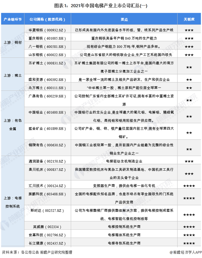 1、 电梯产业上市公司汇总