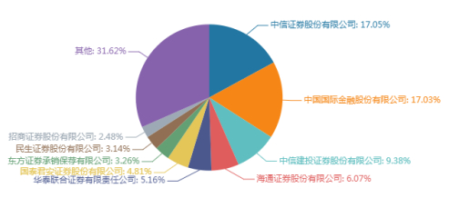 仅计算中信证券与中金公司的合计市场份额则高达34.08%,上述9家券商占据市场份额合计达65.9%。