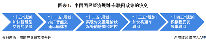 根据我国国民经济“十五”计划至“十四五”规划,车联网经历了从概念到实现并加以应用的过程,国家对车联网行业的支持政策则实现了从“加快智能型交通发展”到“积极稳妥发展车联网”的变化。