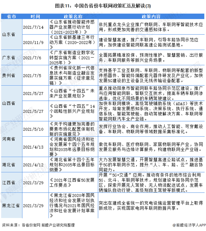 重磅!2021年中国及31省市车联网行业政策汇总及解读(全)行业处于成长初期急需政策引导