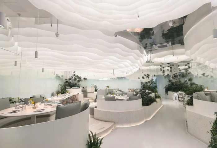 层层叠叠的白色幔帐,配上生机勃勃的绿植与花朵,这家店清新雅致的装修让人走进店里,就像踏进了一个浪漫梦境。恐怕谁进到店里都要忍不住拍拍拍了,每一个细节都是满满的少女心。