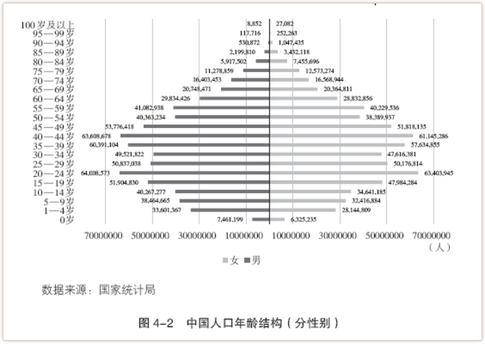 第一,人口曲线从50岁左右开始总体沿横轴斜向下方延伸,揭示了人口老化的自然规律,人们从50多岁之后开始陆续地告别这个世界;另外一个坡度是从中间50岁左右往左下方倾斜,这个趋势称之为人口的社会规律。