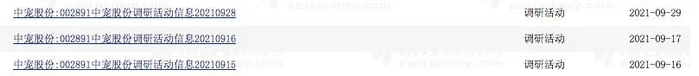 中宠股份9月份以来密集接待机构调研,来源:东方财富