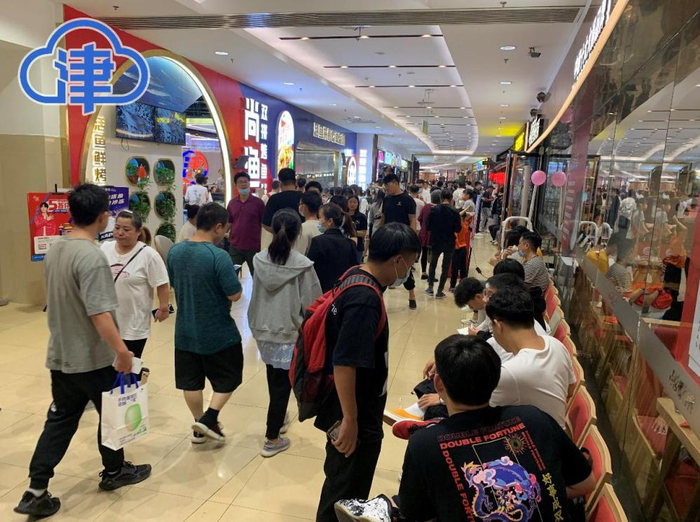 中北永旺购物中心:雨中假期市民热情不减 不少餐馆一桌难求