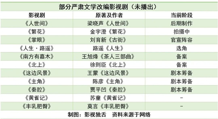 现阶段,严肃文学影视化布局已经在影视行业内卷起来。