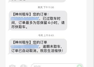 姜先生称,因与前述服务点工作人员协商无果,他只能放弃原有的行程,在酒店等待。今天上午8时,他收到神州租车短信通知,因逾期未取车,订单自动取消。因此,他被神州租车平台扣去677元“取消违约金”。