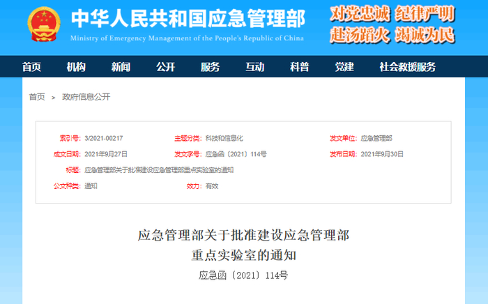 应急管理部重点实验室挂牌组建名单