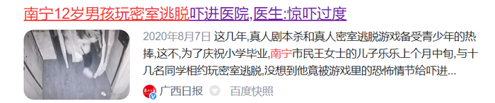 应急管理部消防救援局列举了一些事故案例。今年4月,刘某和几个朋友在广州一家密室逃脱店被“鬼”吓到。游戏过程中,小刘藏在一个小房间里。这时,NPC(非玩家角色)突然闯进门,对着他做一些奇怪的吓人动作。下意识往后逃的小刘直接撞上了铁丝网。小刘的鼻梁、人中部位当即出血,后续还出现晕厥。