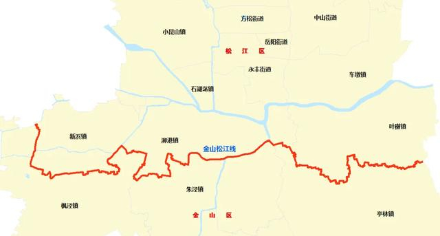 沿线涉及金山区的枫泾镇和青浦区的练塘镇。
