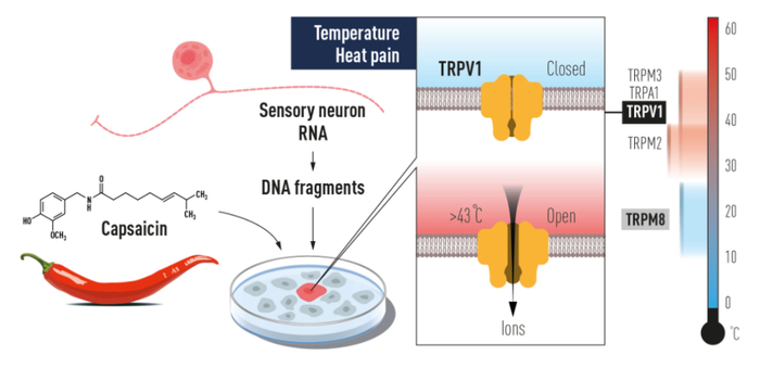 进一步的实验表明,该基因编码了一种新的离子通道蛋白,这一新发现的辣椒素受体后来被命名为TRPV1。当Julius研究这种蛋白质对热的反应能力时,他意识到他发现了一种热感受器,这种感受器在感觉疼痛的温度下被激活。