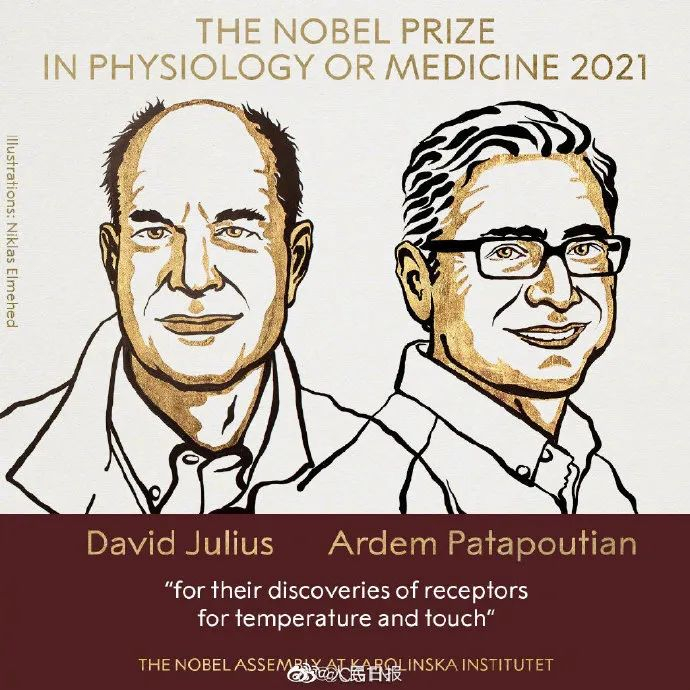 2021年诺贝尔生理学或医学奖授予戴维·朱利叶斯(David Julius)和阿登·帕塔普蒂安(Ardem Patapoutian),以表彰他们在“发现温度和触觉感受器”方面作出的贡献(for their discoveries receptors for temperature and touch)。