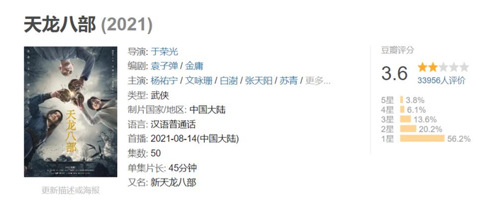 先生离开不到3年,豆瓣上最新的金庸影视剧再没能上过4分。《笑傲江湖》《鹿鼎记》和《天龙八部》,原来拍一部火一部,现在扑街快得仿佛尼古拉斯·凯奇附体。