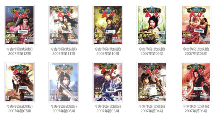 这种变化也能从武侠杂志的兴衰中获得体感。2001年,大陆武侠最大“宗门”《今古传奇·武侠版》创刊,凤歌、小椴、沧月、时未寒,数得上名号的新生代武侠作家轮番登场。短短一年,杂志发行量就达到20万份。2006年,月发行量76万,横向对比同年的《少年JUMP》,发行量是它的3倍。