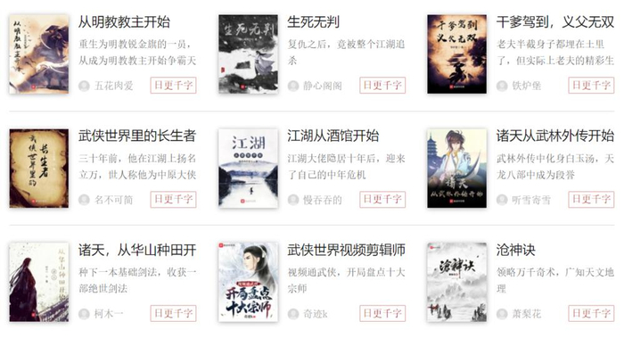 在起点的众多频道中,武侠频道的作品明显相对较少