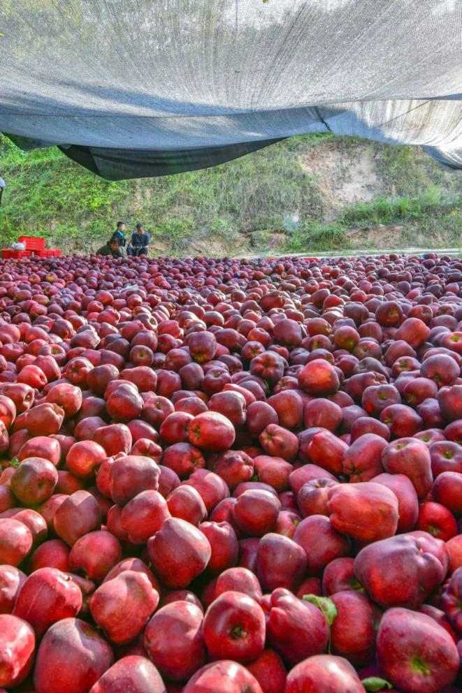 丰收啦!平凉苹果堆积成山。摄影/李存时