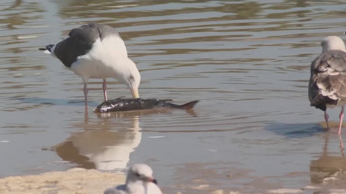 奥兰治县政府3日警告民众远离受污染区域,并表示野生动物救治工作已经展开。据报道,因漏油导致死亡的鸟类和海洋生物的尸体3日上午已被冲到岸边,首批受伤的鸟类同一天中午被送到当地生态和动物保护机构。