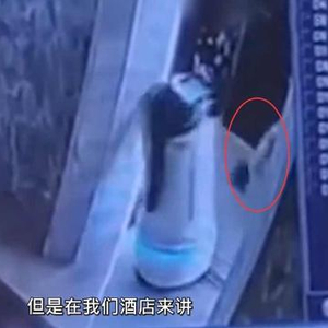10月2日晚,在四川成都一酒店内,机器人进电梯时被电梯内的酒店住客用脚阻止。监控视频显示:该住客先轻踹了机器人一脚,机器人第二次欲进入电梯时,被该男子用力踹翻在地。