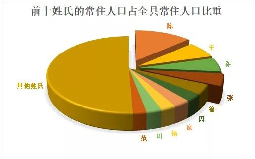 前四位姓氏人口占全县常住人口的31.65%,相当于每三个常住人口中,就有一位是四大姓氏的人。