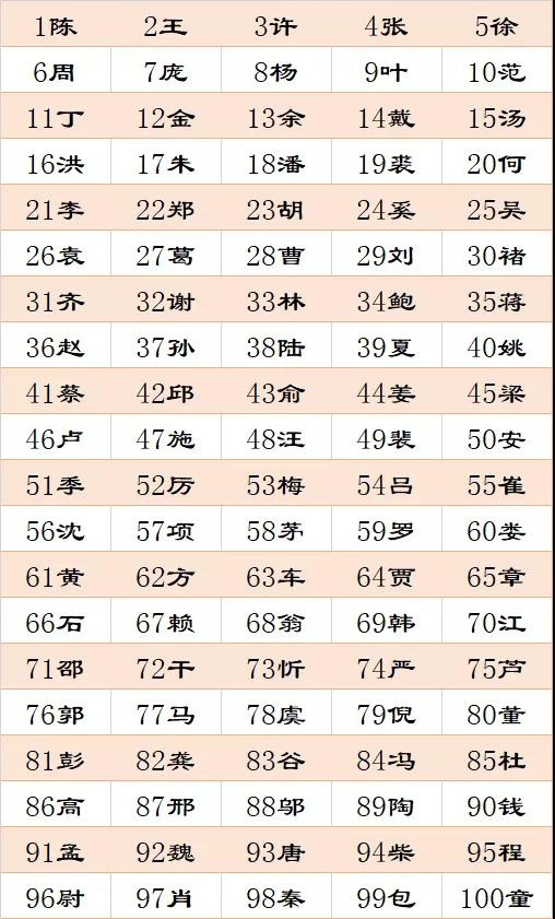 天台县第七次全国人口普查的结果显示,在天台县47.47万常住人口中,排名前十位的姓氏分别是陈、王、许、张、徐、周、庞、杨、叶、范。你的姓氏排第几?一起来看看吧!