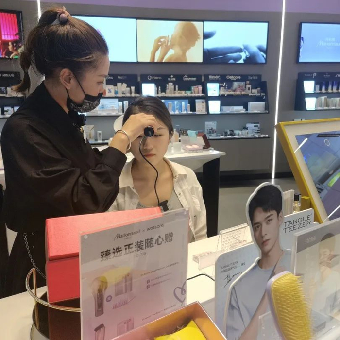 去年,屈臣氏将玛莉娜引入中国,玛莉娜和屈臣氏全球首家融合店在五角场万达开业,护肤、彩妆、香水、洗护、美容仪器等全都汇聚于此,赫莲娜、雅诗兰黛、海蓝之谜、娇韵诗等知名品牌也都可以在这里找到。