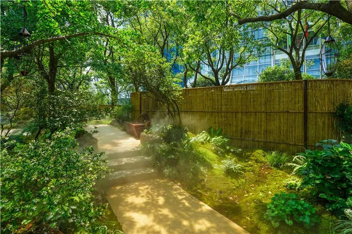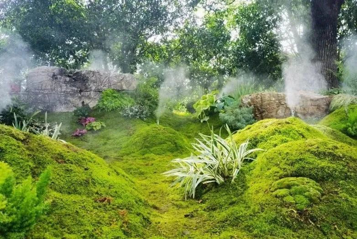 苔藓园采用了模拟自然生境种群与群落的配置手法,并配以雾森系统,在斑驳的光影中打造“苔痕上阶绿,草色入帘青”的诗情画意,为市民创建了一个设计创新、实践创新、生态创新的特色花园。