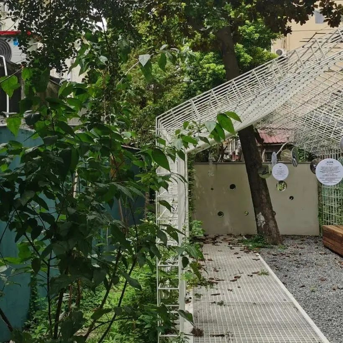 秘密花园里的植物品种也十分丰富。除了区域内原有的雪松、芭蕉、竹子外,还新种植了垂丝海棠、无花果、柠檬、枸杞、迷迭香、鼠尾草、石竹等50余种植物,让花园里四季皆有景,也让居民们可以近距离欣赏到很多并不常见的植物,观察它们的生长过程,丰富自身知识。