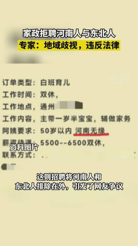 某家政招聘被曝不录用河南人和东北人,工作人员竟称只因“口碑不好”?