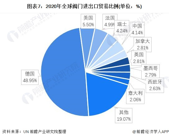 伴随着我国经济的高速增长,我国的劳动力优势、工程师红利等优势条件开始在制造业中逐步体现,而伴随着产业升级,中国的阀门制造行业进出口额也开始飞速上升。2020年,根据联合国披露的国际贸易数据来看,我国阀门进出口贸易总额42.76亿美元,占全球阀门贸易总额的4.14%。