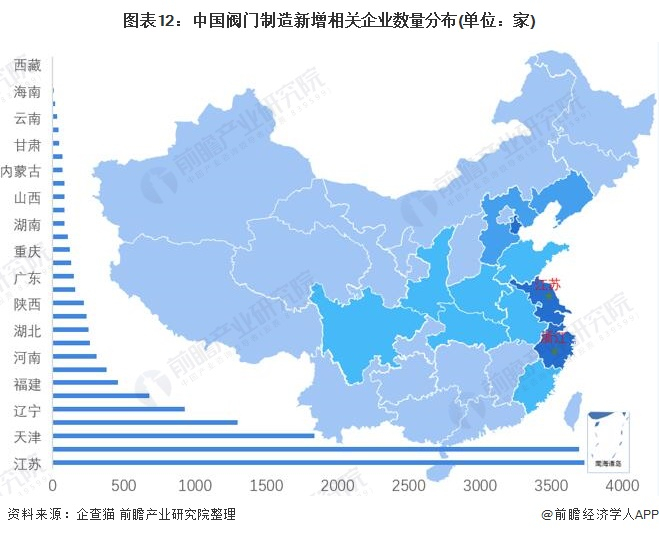 1、区域竞争:江苏浙江拥有最多的阀门制造企业