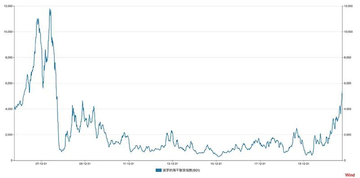 波罗的海干散货运价指数(BDI)在9月底突破5000点大关后仍未收住涨势。10月5日,BDI报收于5409点,较前一日上涨2.7%,较一个月前的3822点上涨超过40%,继续刷新自2008年9月以来的历史新高。