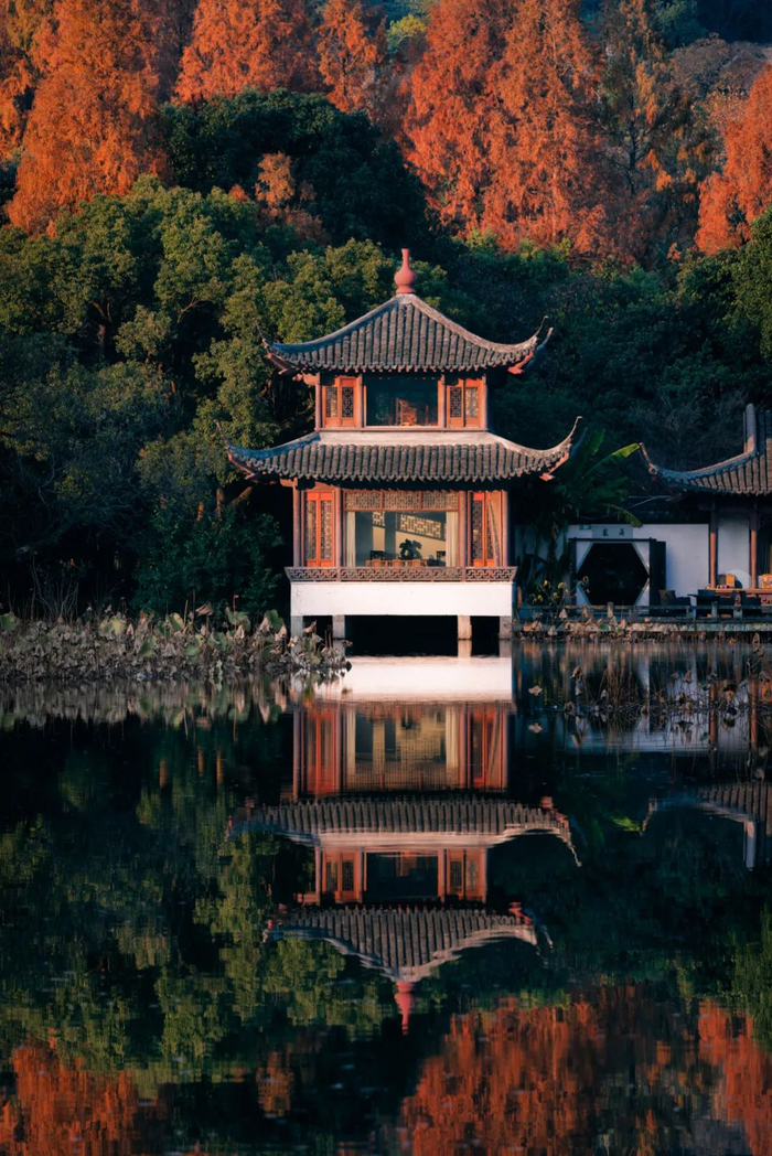 再沿着长江往南去,森林湿润常绿,秋意也越来越淡,不过秋日的氛围依旧浓厚,人,也可以沉醉在秋风里: