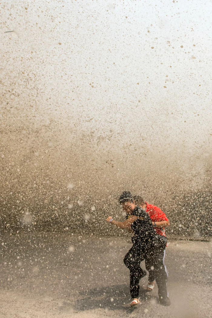 钱江潮秋潮再起,巨浪直扑观潮者。
