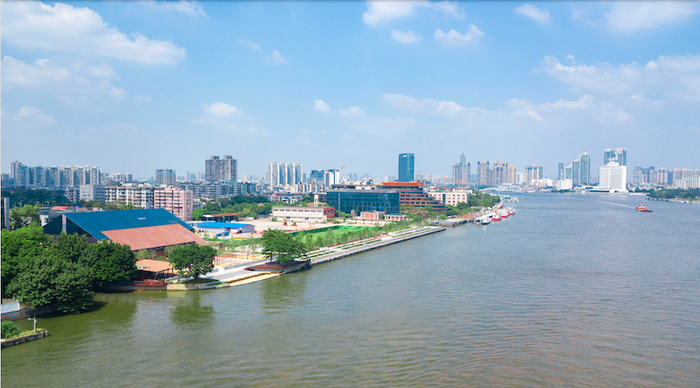 项目自建设以来,坚持高标准设计,引入包括SOM、隈研吾、SASAKI、GMP在内的多家国际顶级机构参与规划设计;践行全周期管理,把全周期管理理念贯穿衣食住行、安居乐业全过程和城市规划、设计、开发、建设、运营、管理各环节,推动产城人融合发展;以高端商贸和生产性服务业为主导,探索打造“新商贸”“新总部”“新双创”“新时尚”产业生态集群;传承历史文化,对古村落、文化建筑、工业遗迹等就地保护和利用,保留岭南文脉记忆、珠江自然景观,活化历史遗存资源,打造多元开放复合文化社区;推进可持续发展,贯彻“碳达峰”“碳中和”目标,最大限度保留原场地基层、原生乔木以及原建筑红砖、混凝土碎块、仓库木梁等,不破坏草木,不产生新建筑废料,探索碳排放“零新增”,打造珠江西岸城市目的地。