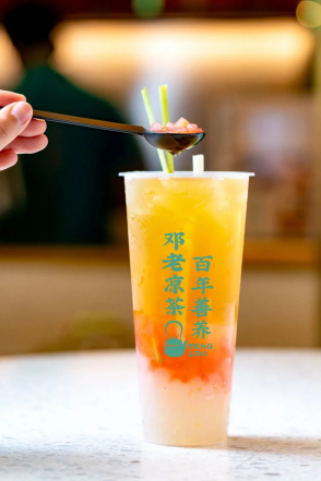 不同于市面上大多数同质化的高糖高脂类的奶茶品牌,邓老凉茶主要以邓老养生文化为根本,结合“药食同源”的中医养生系统,在配方上进行创新,使其兼具功能和口感,为消费者提供“好喝又养生”的茶饮,且根据四季时令推荐不同的主打款,满足消费者对于健康养生的多元化需求,持续打造极具辨识度的国潮养生茶饮文化。