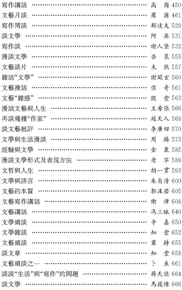 《文话卷》中古文名家钱基博的《精忠柏石室文话》(1918)以历代古文为范本对读者讲述观读、写作古文之法,娓娓道来,实为难得的经验之谈。夏丏尊、叶圣陶合撰《开明国文讲义·读写的故事》(1934)恰可与之对读,该文将当时国文科所涉读与写的主要问题放置在设定的故事情境中一一讲解,明白晓畅,深受中学生和普通读者欢迎,对上世纪三四十年代的中学语文教育产生了深刻影响。夏、叶二人组织编写的《开明国文讲义·文话》(1934)是其姊妹篇,侧重于讲述诸种现行文体及写作方法,通俗易懂,引人入胜,同样具有广泛的影响力。胡怀琛的《韩柳欧苏文之渊源》(1926)代表我国文话一贯的考镜源流传统,余冠英的《文章浅话》则借严复论翻译之“信、达、雅”原则讨论写作好文章的标准问题,代表文话在现代时期积极吸收其他领域学术资源的新面向。另外,现代文话中还兴起了一类“文学”(文艺)话,周作人《文艺批评杂话》(1923)、许钦文《文学细话》(1933)、朱自清《什么是文学》(1947)是此类文话的精品。周氏提出的“科学的分析的文学原理,于我们理解文学的人诚然是必要的,但决不是一切。因为研究要分析,鉴赏却须综合的”