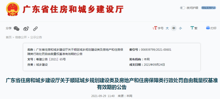 原标题:广东省住建厅顺延城乡规划建设类及房地产和住房保障类行政处罚自由裁量权基准有效期