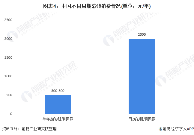 业内人士表示,相比一个半年抛用户每年在美瞳上可能不会超过300元~500元的消费额,一个经常佩戴日抛的用户全年的花销可以超过2000元。