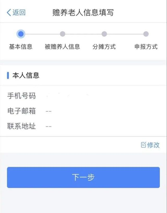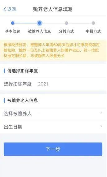 4.选择被赡养老人信息,点击【下一步】