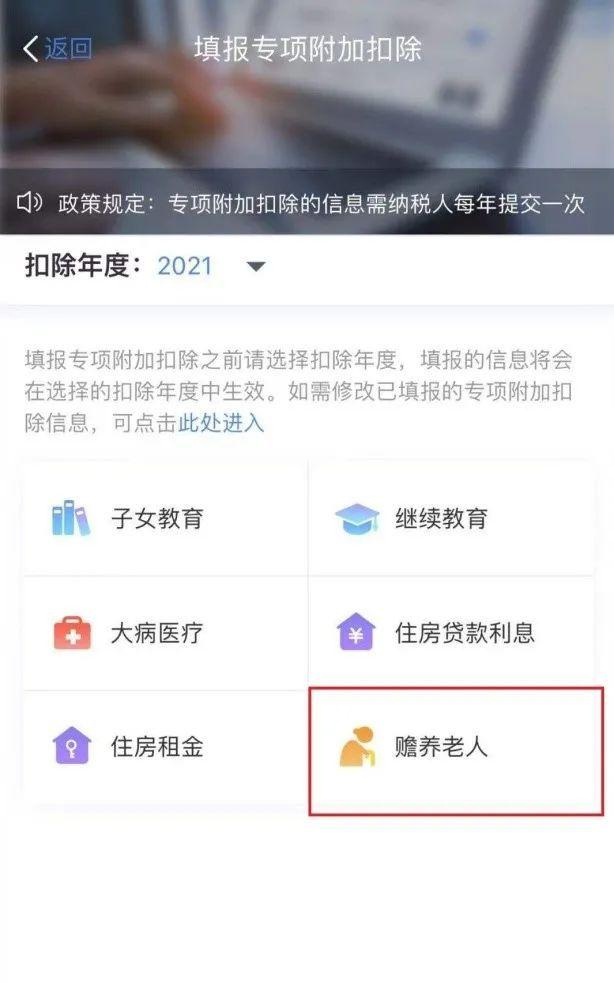 2.选择扣除年度,选择【赡养老人】