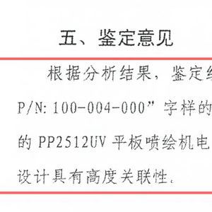 据润天智公司相关负责人介绍,为确认汉拓数码生产的弘图HT2512uv数码打印喷绘机与润天智PP2512UV平板喷绘机的实质相似性,2011年2月24日,润天智委托广东省专利信息中心知识产权司法鉴定所,对PP2512UV平板喷绘机的电源板与弘图HT2512uv数码打印喷绘机的电源板的相似性申请了司法鉴定,鉴定组一致认为,“逻辑电路实质相似,双方电路板PCB版图设计具有高度关联性”。