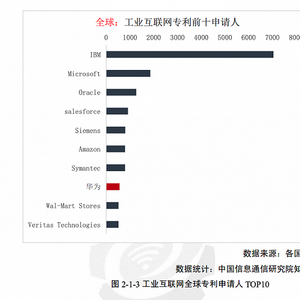 信通院于2019年发布的报告《工业互联网关键技术专利态势分析》指出,在全球 TOP10专利申请人排名中,外国企业占据明显优势,中国企业持有专利数量普遍相对较少,较难跻身全球前十。